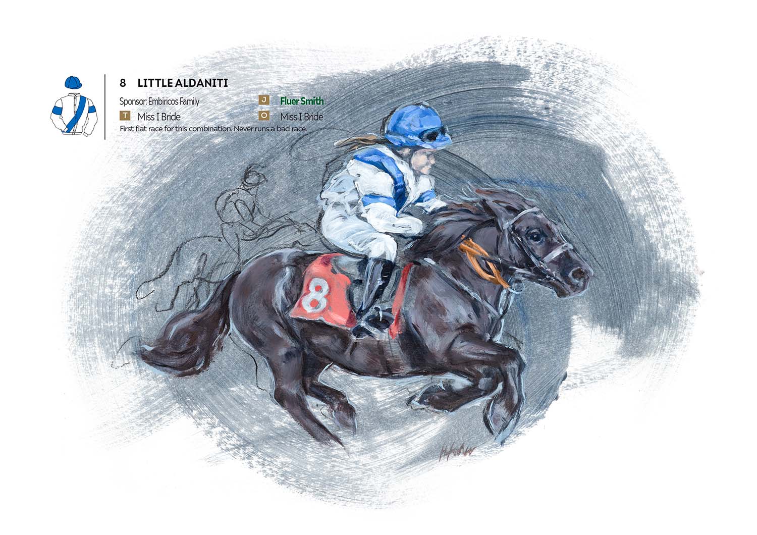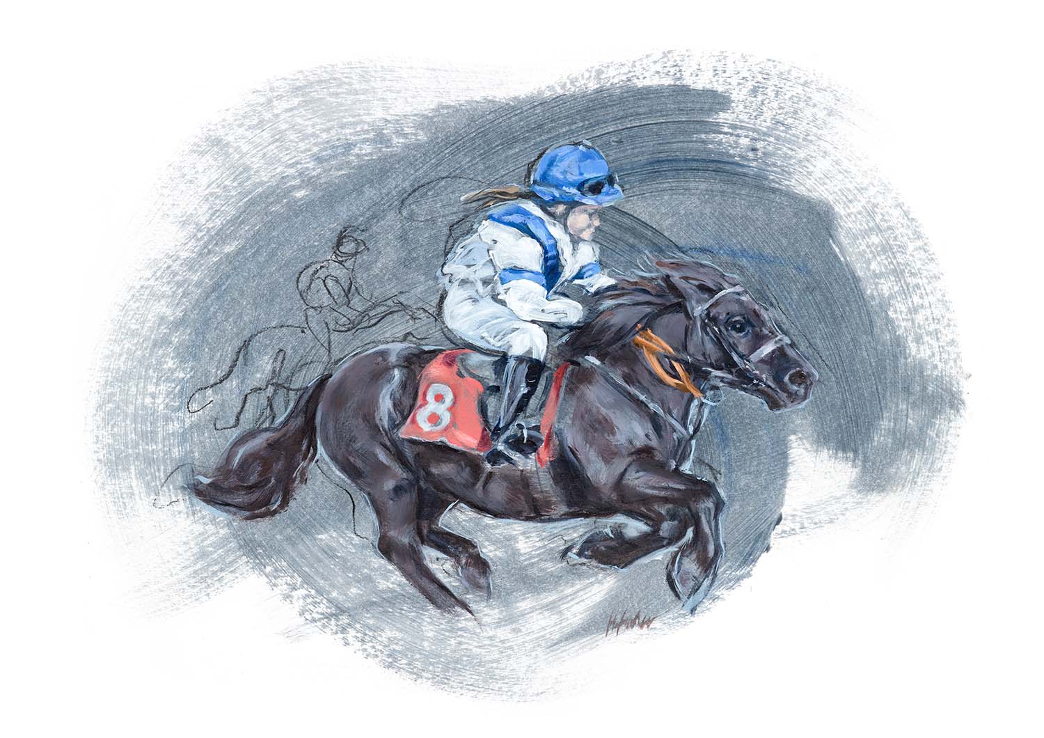 To find that ‘Little Aldaniti’ had won a Shetland race at Wincanton, a racecourse I’ve had a happy association with for the last 10 or so seasons, gave me the perfect opportunity create a painting in the style that I do the winners on the racecard for Wincanton, Exeter and Kempton.
