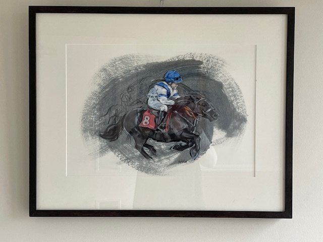 The original painting of ‘Little Aldaniti’ winning at Wincanton hangs, appropriately, in the Winning Connections entrance at the racecourse! The framed original is available to buy…